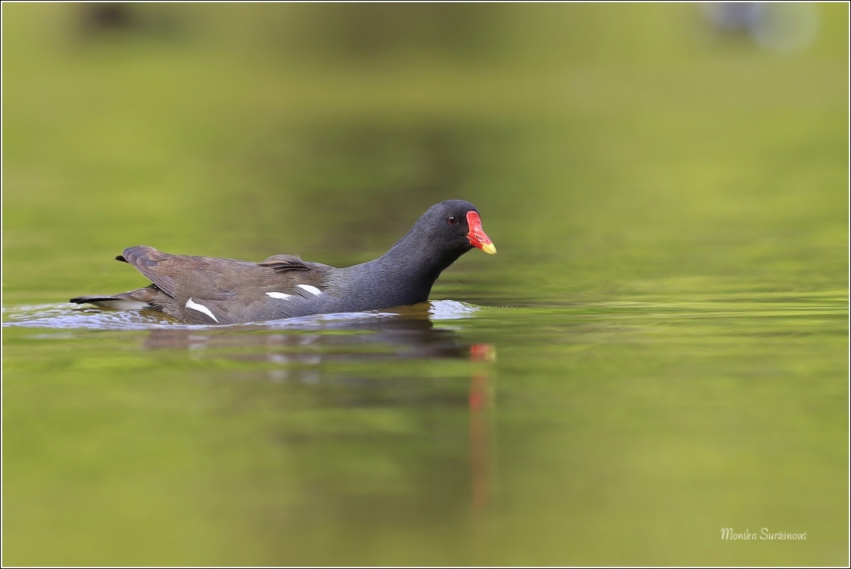 SLÍPKA ZELENONOHÁ (Gallinula chloropus) Praha, Stromovka --- /Common moorhen - Teichralle/
